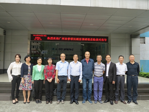 4月13日,广州市侨联副主席卢启明,广州市侨联法顾委主任、市人大常委会内务司法工委原主任黄荣康及市侨联法顾委律师委员一行11人前往黄埔区召开2018年市侨联法顾委律师委员工作会议暨开展侨资企业调研活动。黄埔区侨联主席李子安等陪同参加。 法顾委一行首先参观了广东高义律师事务所,听取该所主任、市侨联法顾委委员林明开对律所发展经营情况的介绍,并就律所建设进行了交流。卢启明副主席传达了中国侨联法顾委2017年年会、2018年全国侨联经济科技工作会议精神。与会人员围绕贯彻落实习近平新时代中国特色社会主义思想,进一步深化侨联改革,推动侨联维权工作创新发展等方面探讨交流,研究制定了下一步法顾委工作思路和方向。黄荣康主任表示,法顾委将按照市侨联要求,切实履行职责,充分发挥作用,不断增强提高维权水平和成效。 法顾委一行还参观了广州奥图弹簧有限公司,深入厂区车间进行现场参观,奥图公司董事长、广州新侨联谊会副会长阮国源对公司起源、发展、转型、产品、市场等各方面进行了详细介绍。交流中,法顾委一行认真了解侨资企业生产经营中权益保护情况,发展过程中遇到的法律难题等,主动为侨资企业提供“点对点”法律咨询和维权服务。 此次活动是市侨联深入学习贯彻党的十九大精神和习近平总书记对广东工作重要指示批示精神的具体举措,也是按照市委第一巡察组《关于对广州市归国华侨联合会党组巡察情况的反馈意见》的整改要求,进一步凝聚侨心、汇集侨智、发挥侨力、维护侨益,发动和组织广大侨界群众参与全市招商引资、招才引智工作,有效发挥侨联组织联系侨界群众的桥梁纽带作用的具体行动。 (来源: 广州市侨联 作者: 秦榕)
