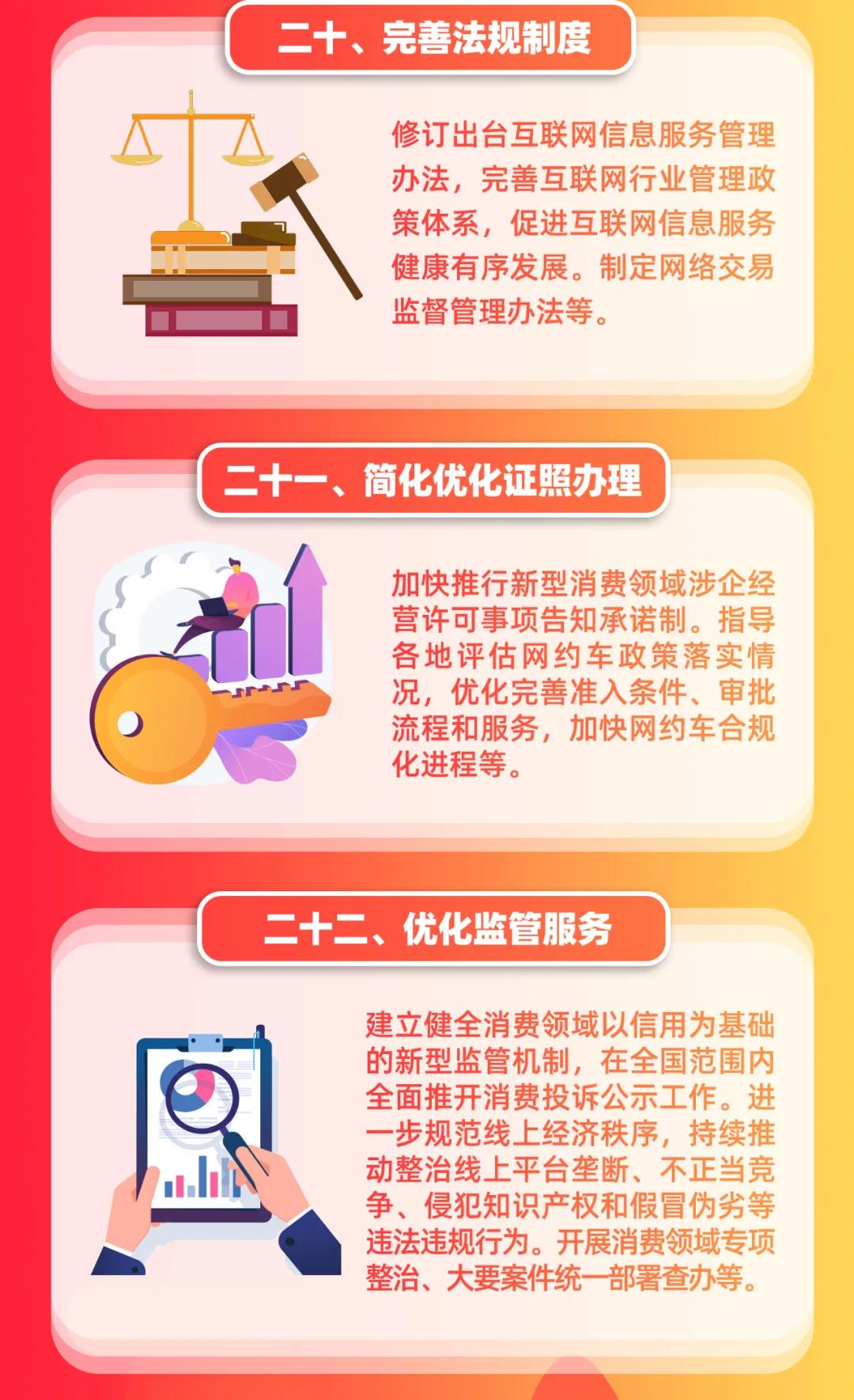 四是立足改善新型消费营商环境,强调完善法规制度,简化优化证照办理,优化监管服务,健全标准体系,深化统计监测。